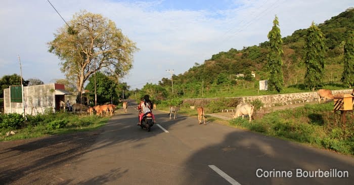 Il faut juste faire gaffe aux vaches, au retour, à l’approche des villages. Elles aiment bien rester plantées au milieu de la chaussée et ne surtout pas en bouger quand une moto ou une voiture arrive…
