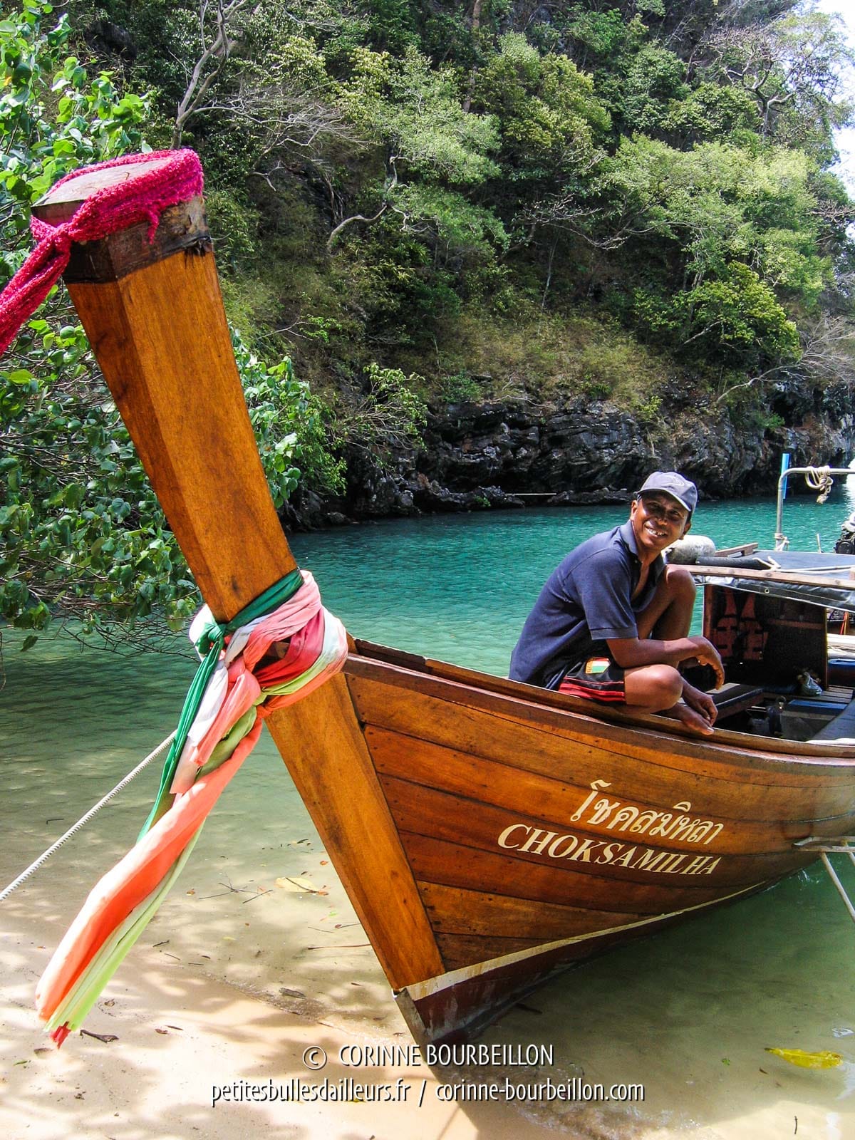 @JolaThai: Il y a trois embarcadères, de mémoire, pour Koh Yao Noi. Tu devrais retrouver ça facilement en faisant une petite recherche sur le web (tape les mots : Koh Yao Noi + ferry, dans Google). Le plus proche de Phuket est celui d’où j’étais partie : Bang Rong Pier.