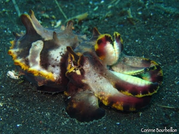 D’ailleurs, une fois sous l’eau, j’oublie complètement cette fichue otite, captivée que je suis par les spectaculaires changements de couleur et de texture d’une bien-nommée seiche flamboyante.