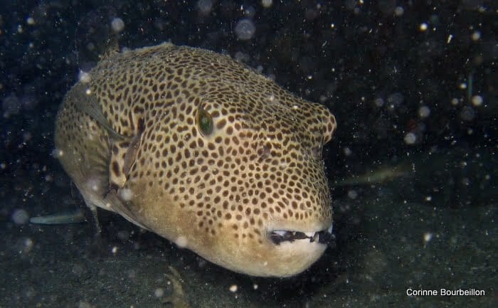 Malgré la “neige” qui parsème les photos, j’ai réussi à shooter quelques bestioles. Poisson ballon étoilé, rascasses volantes.