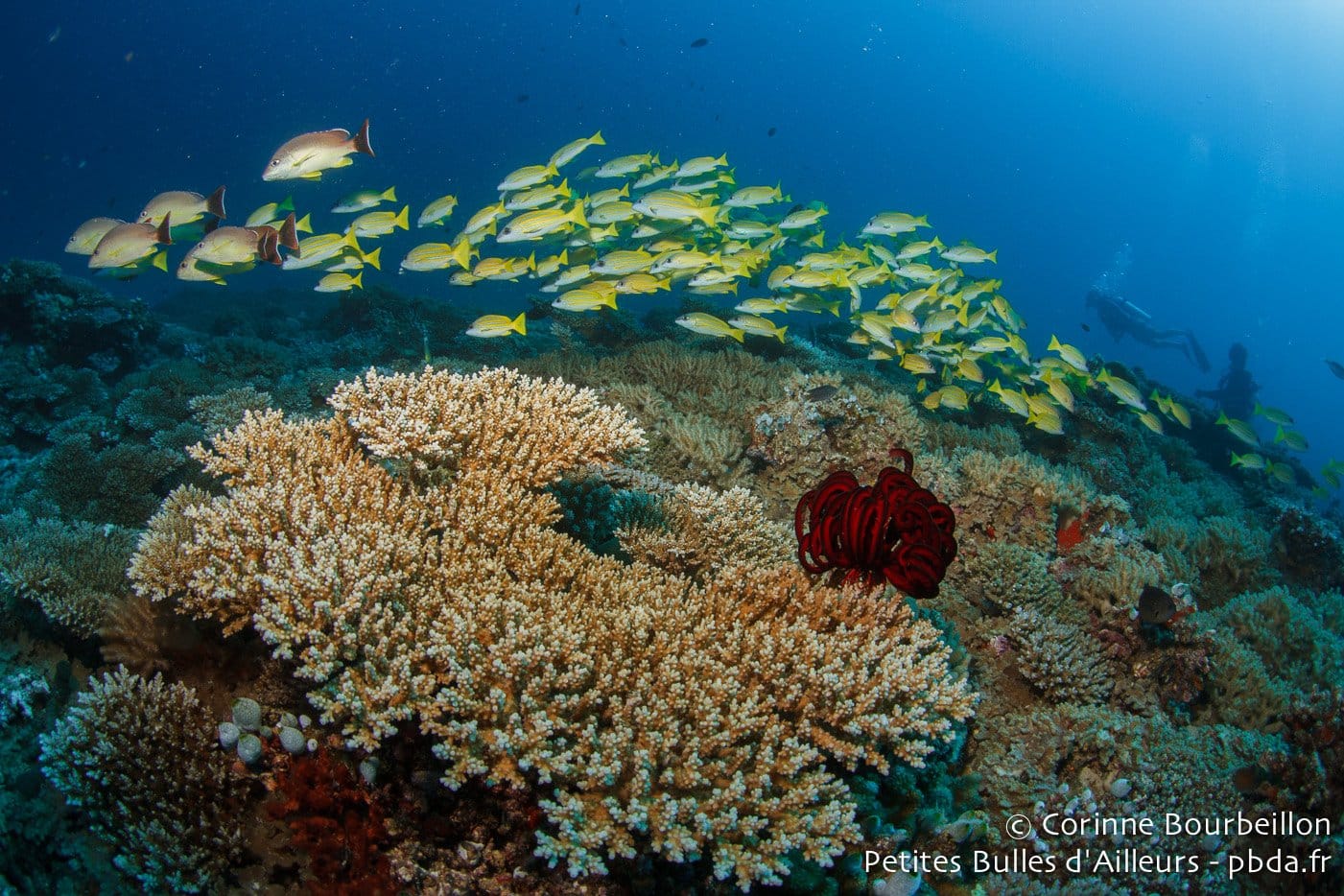 Je referme ici la parenthèse politique, pour revenir à mes préoccupations plus futiles de vacancière et présenter rapidement la suite du voyage… Car ce sont, entre autres, les fonds sous-marins réputés de l’archipel maldivien qui m’ont attirée ici !