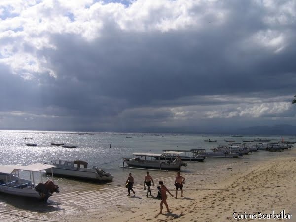 Gros nuages gris sur Bali, a l’horizon. Mais sur la plage de Jungut Batu, a Nusa Lembongan, le soleil brille.