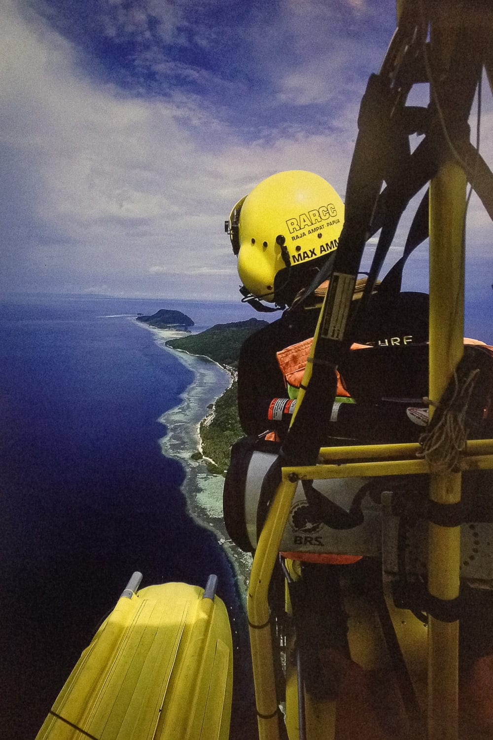 On y découvre Max et son petit avion-ULM jaune de l’époque (les images remontent à pas mal d’années) destiné aux missions de conservation et de protection du parc naturel de Raja Ampat (repérage des bateaux de pêche illégaux et des animaux marins, expéditions scientifiques, reportages, etc.).