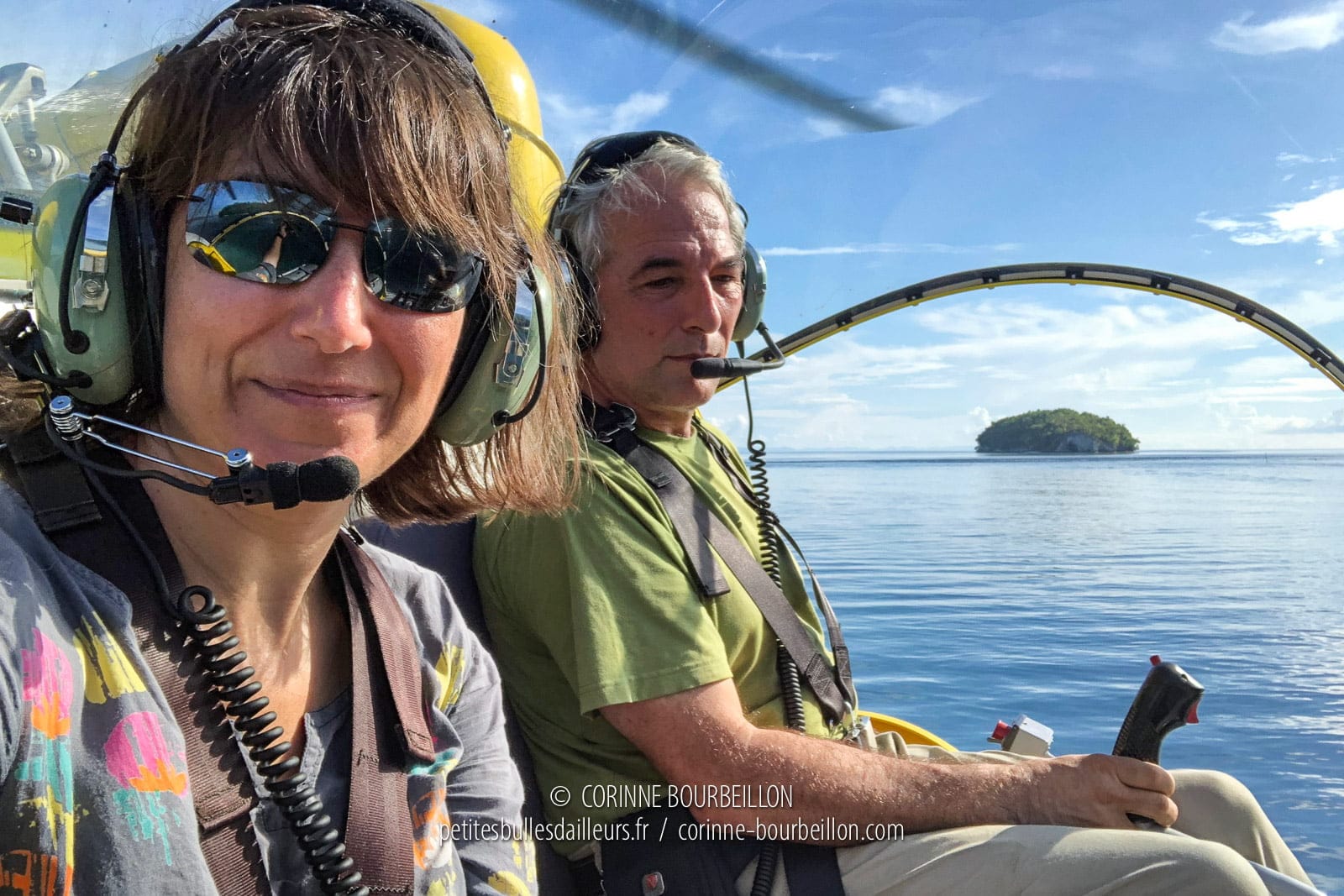 Mise à jour, décembre 2018. Ça lui a pris plusieurs années, mais Max est parvenu à faire construire un premier hélicoptère, sur l’île de Kri ! Un hélico “de poche” du modèle Bell-47, dont toutes les pièces ont été acheminées puis assemblées sur place… En décembre 2018, j’ai même eu la chance de monter à bord et de survoler Kri et ses alentours, lors de vols tests ! Je raconterai peut-être ça sur le blog un de ces jours…