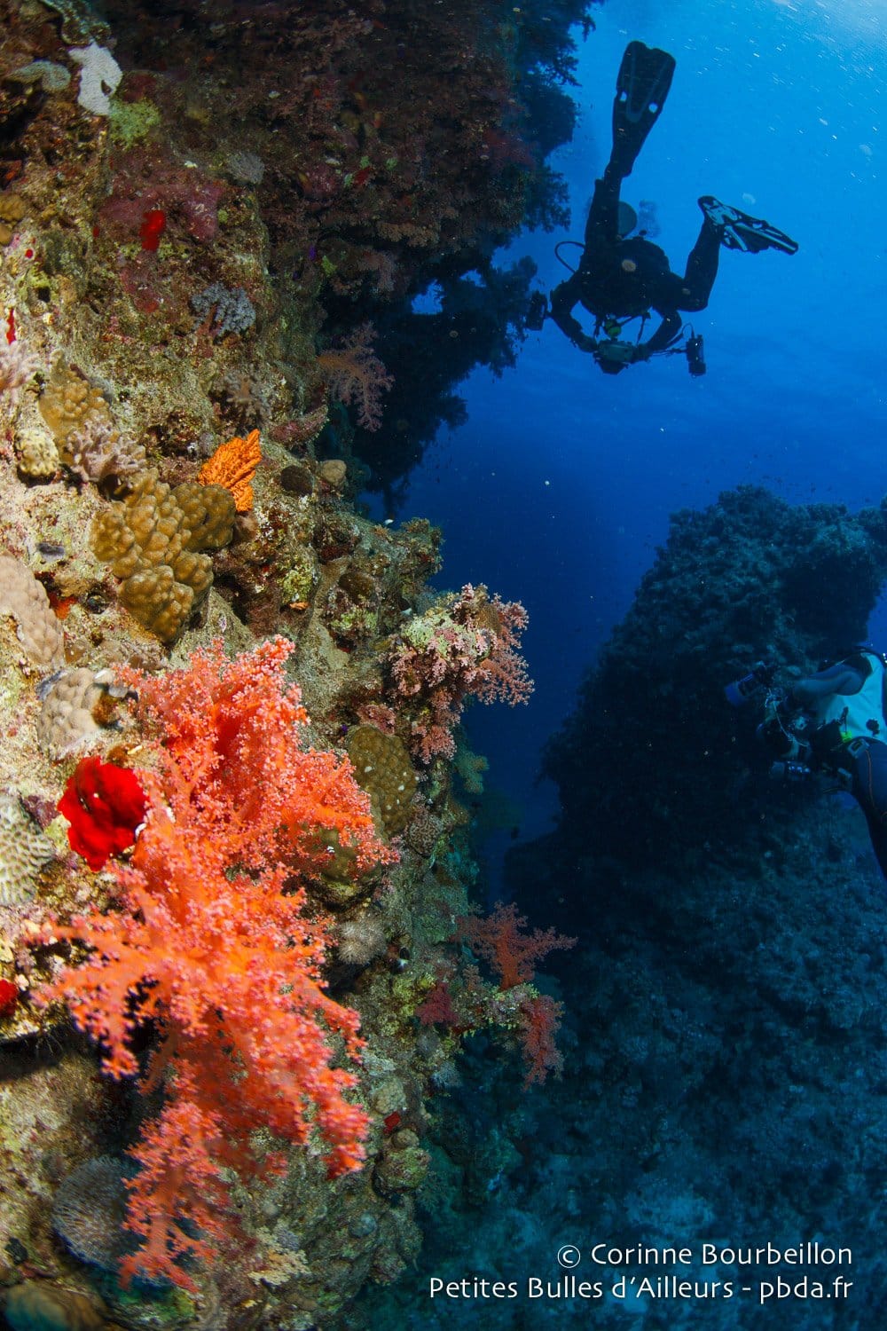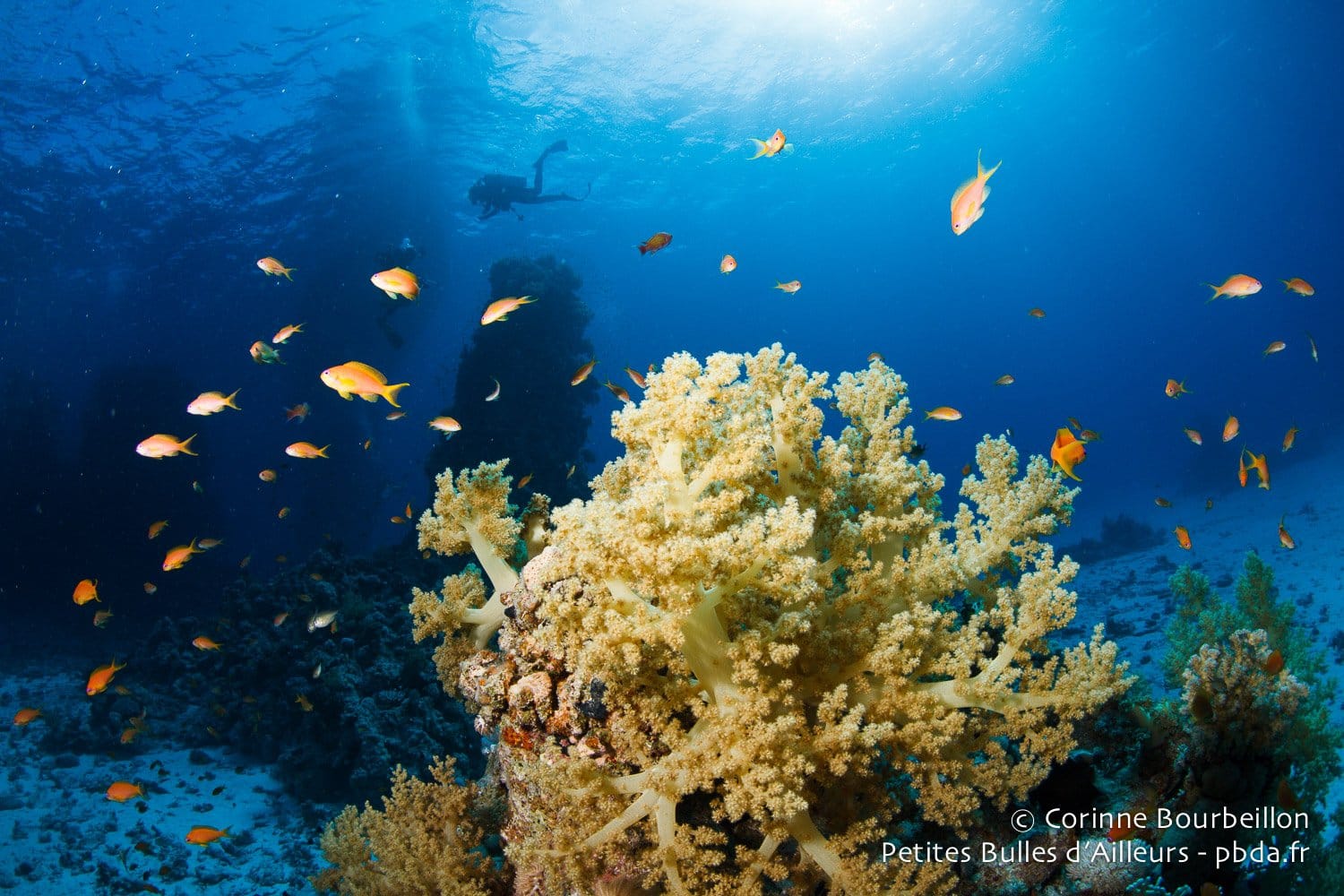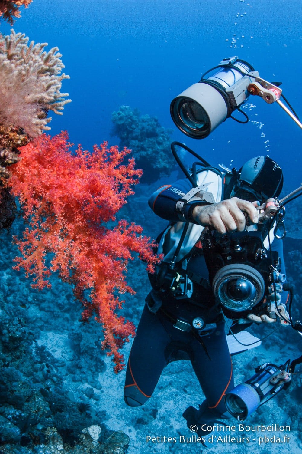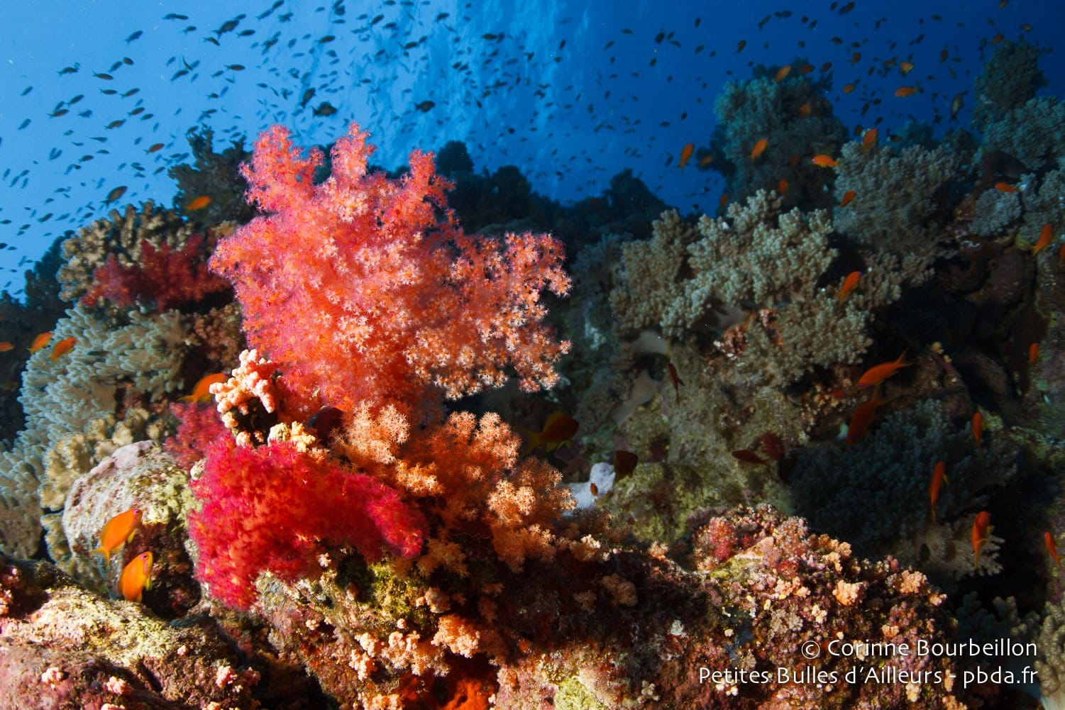 La mer Rouge est bleue, c’est entendu. Mais sous la surface, c’est une explosion de couleurs, quand on balance un coup de flash sur les coraux mous. Des rouges, des jaunes et des roses pétants, photogéniques au possible !