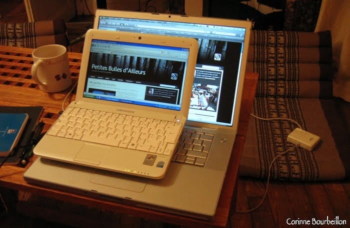 Les atouts de cet ordi d’appoint “nomade” : petit, léger, pas cher. Je l’ai emporté lors de mes dernières escapades, jusqu’à Bornéo. J’en suis très très contente. Bien que ce soit… un PC!