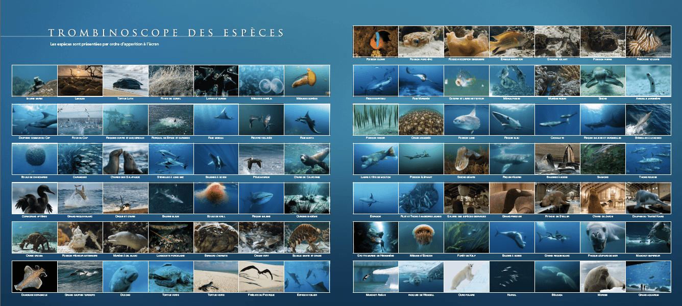 Pour les vrais mordus de biologie marine (et j’en connais! ), il y avait même le trombinoscope des espèces montrées dans le film.