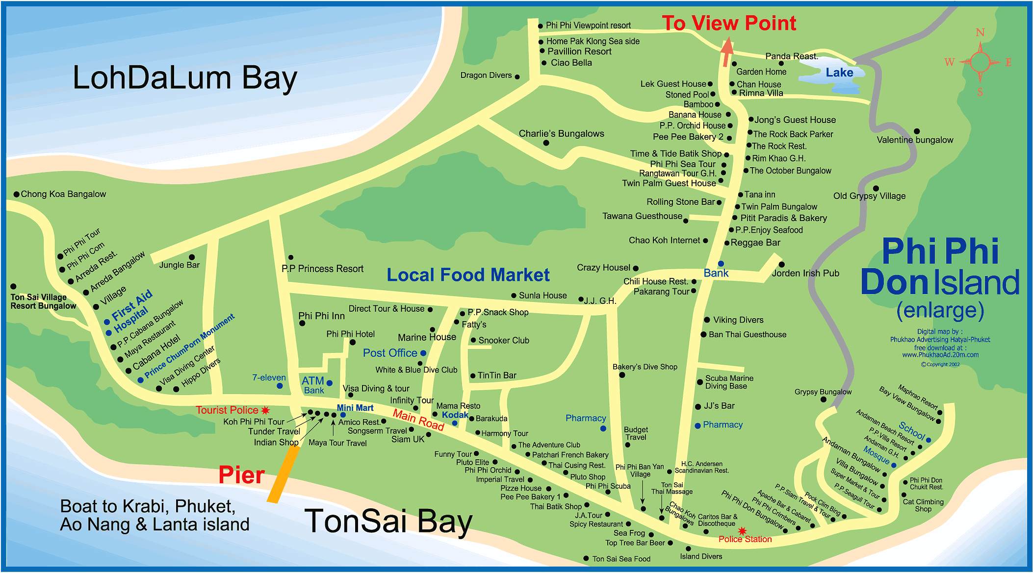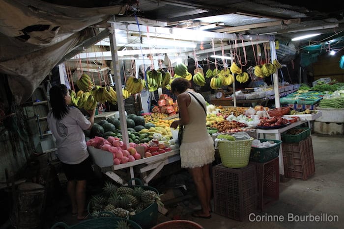 Le resto et le bar sont faciles à trouver. Tous deux sont dans la rue la plus sympa de l’île pour manger, la rue du « local food market », marquée en bleu sur la carte ci-dessous.