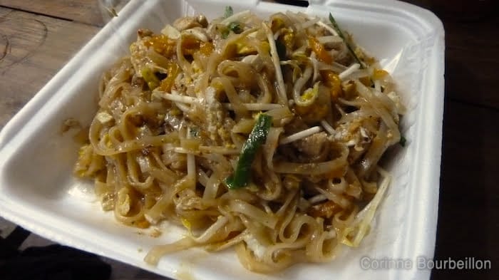 Je confirme : le pad-thaï était très bon; la dame des nouilles est adorable dans son mètre carré de cuisine où l’on ne sait même pas où poser l’argent de l’addition parce qu’elle a les mains toujours occupées; traverser la rue pour siroter un délicieux “sake” est un divin petit plaisir.