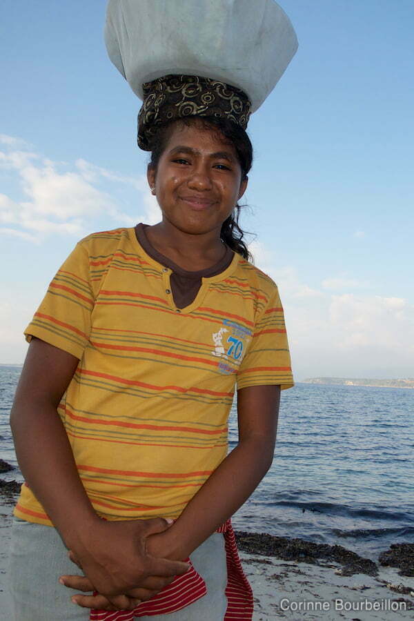 Je l’ai d’ailleurs croisée plusieurs fois, sur la plage, transportant son chargement de fruits ou de légumes. Lors de notre deuxième rencontre, elle me reconnaît et vient me demander de la prendre en photo, avec l’autre porteuse.