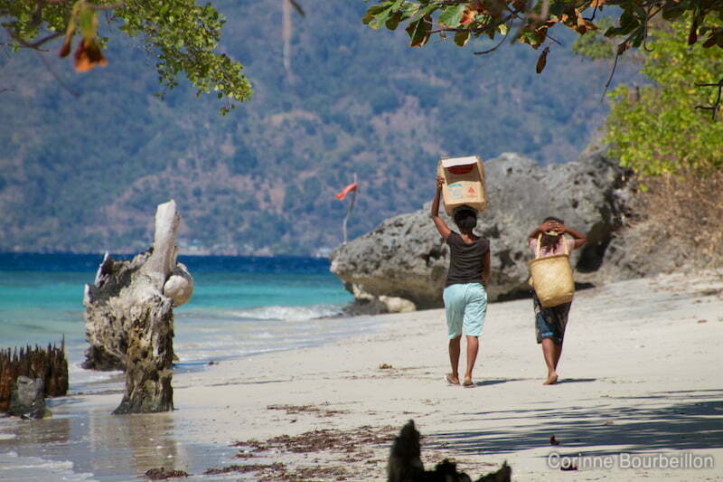 Je les complimente, leur dis en indonésien qu’elles sont très jolies, je les remercie, elles me remercient, puis replacent leurs charges sur leur tête et s’éloignent…
