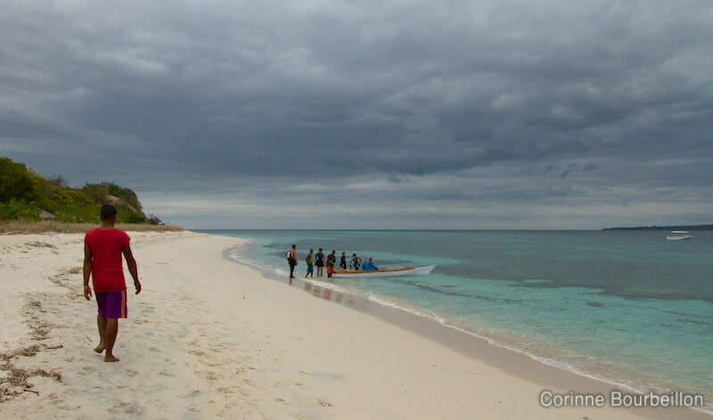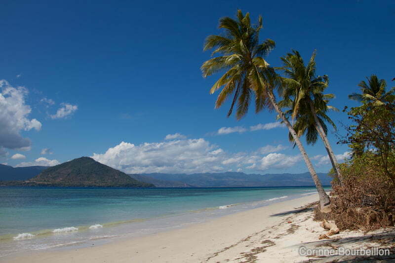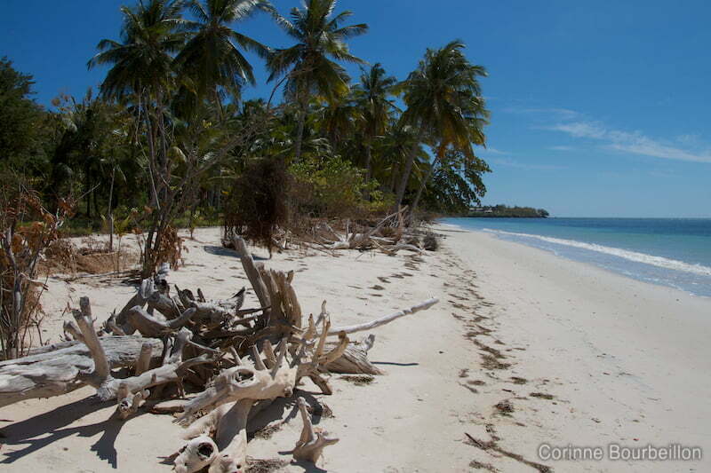 Puis la plage se transforme peu à peu en carte postale : sable blanc et cocotiers sur mer azur.