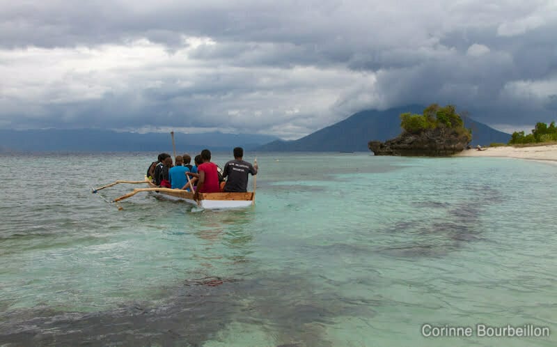 Notre petit groupe de plongeurs enchaîne les sorties. Deux à trois plongées par jour, par tous les temps. Souvent, on quitte la plage de Pantar à bord d’une petite pirogue traditionnelle à balancier, pour rejoindre le bateau ancré plus loin.