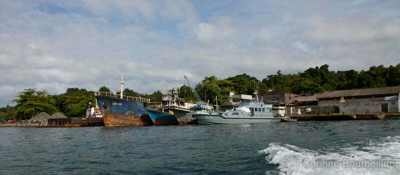 Une ville sans forme, traversée de routes plus ou moins vagues, où alternent cahutes misérables et bâtisses de béton. Rien de bien attirant, hormis les sourires des gosses qui jouent et des passants qui vous regardent filer vers la mer. C’est un port industriel et minier en plein développement. Et la porte d’entrée pour Raja Ampat.