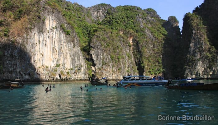 Mise à jour 2022 : Maya Bay, asphyxiée par le surtourisme, a été fermée en 2018 par les autorités thaïlandaises, pour permettre aux coraux et aux fonds marins de se régénérer… L’explosion du tourisme venu de Chine, notamment, qui représente désormais près d’un tiers des visiteurs en Thaïlande, n’a pas arrangé les choses. La Thaïlande envisageait de rouvrir Maya Bay en 2021, ce sera finalement le 1er janvier 2022, en limitant le nombre de personnes. Pour protéger les écosystèmes, les quotas sont efficaces, on l’a vu à Sipadan en Malaisie. Plutôt une bonne initiative, donc.