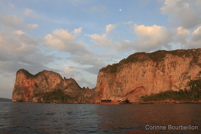 En cette fin de journée, on retrouve une ambiance plus sereine, qui rappelle ce qu’était Maya Bay, avant le film La Plage et la frénésie touristique.