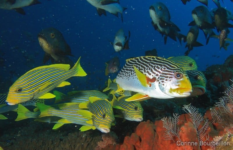 Je suis revenue de 3 semaines à Madagascar c’est une île extraordinaire et je te conseille d’y tremper tes palmes un jour, en plus les paysages terrestres sont grandioses avec les tsingy et les forêts où se cachent lémuriens et caméleons !