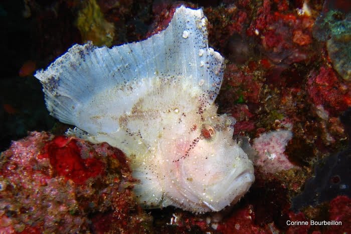 Je vais retourner sur le house-reef, pour continuer de me familiariser avec mon nouveau caisson. Et me faire montrer les endroits où il y a de jolies curiosités, dans le style poissons-crapauds (antennaires) et poissons-fantômes arlequins…