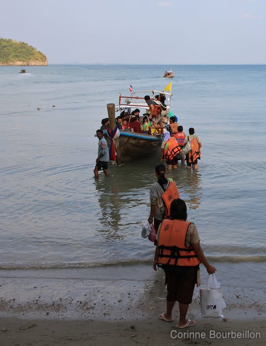 Pendant ce temps-là, le personnel thailandais des hôtels embarquait aussi en long-tail, pour rentrer sur le continent, la journée de travail finie.