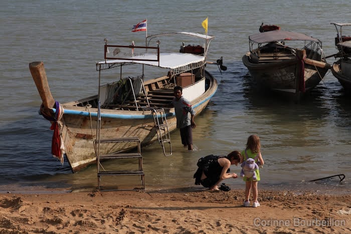 Ça se présentait bien, pourtant. Le gars était là avec son panneau à l’aéroport. Et les princesses ont eu droit à un minibus climatisé pour elles toutes seules. Trajet direct jusqu’à la plage où nous attendait le long-tail boat.