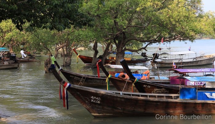 Le long-tail boat ou « bateau longue-queue » (et ça n’a rien à voir avec la grotte aux phallus 😆 ), c’est une grosse barque avec un moteur de bagnole récupéré, dont l’arbre est fixé à une hélice à l’arrière. Les long-tails, c’est un peu les tuk-tuks de la mer…