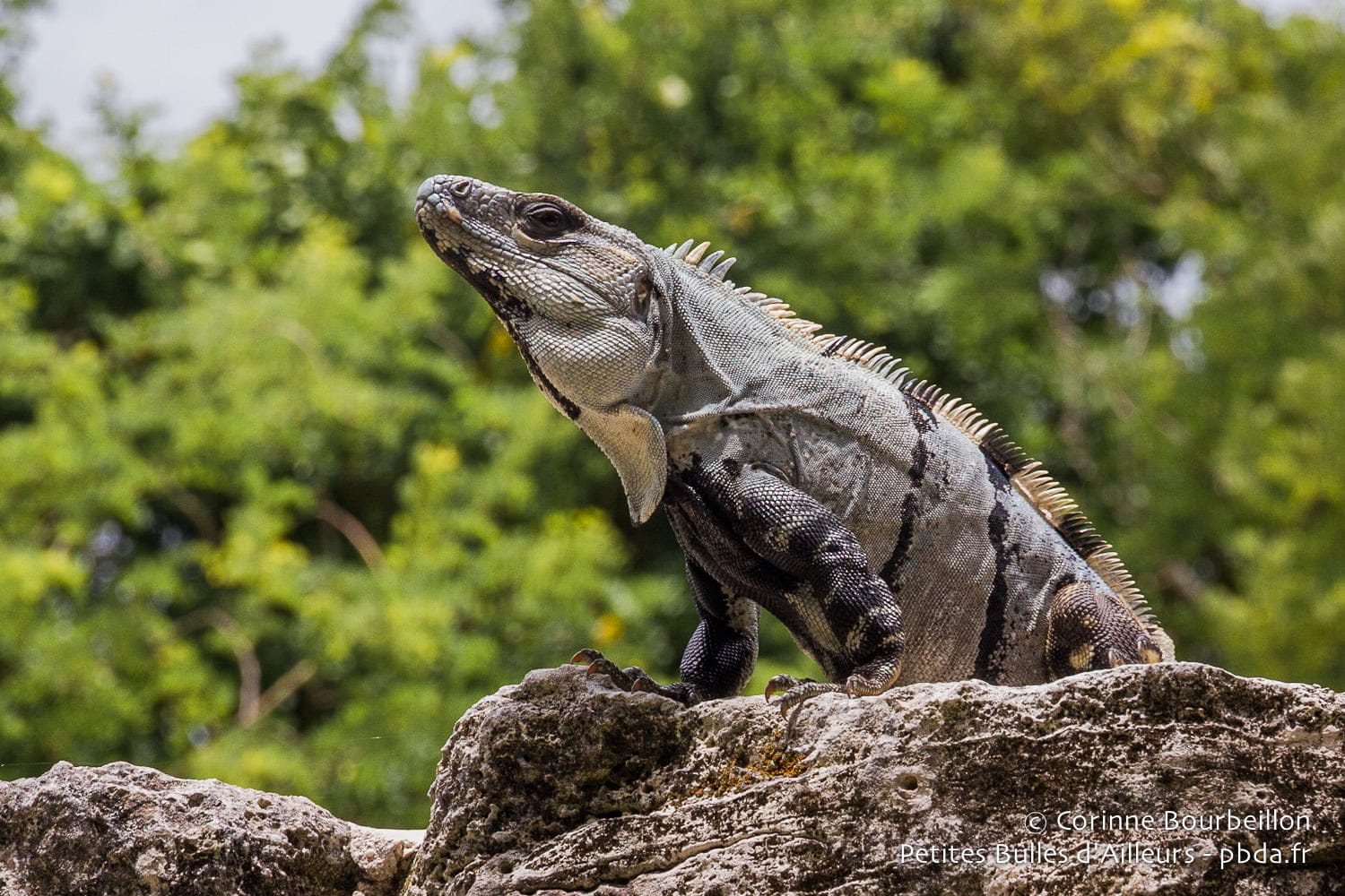 Un iguane de belle taille me surveille du coin de l’œil. Je m’approche à pas lents pour lui tirer le portrait.