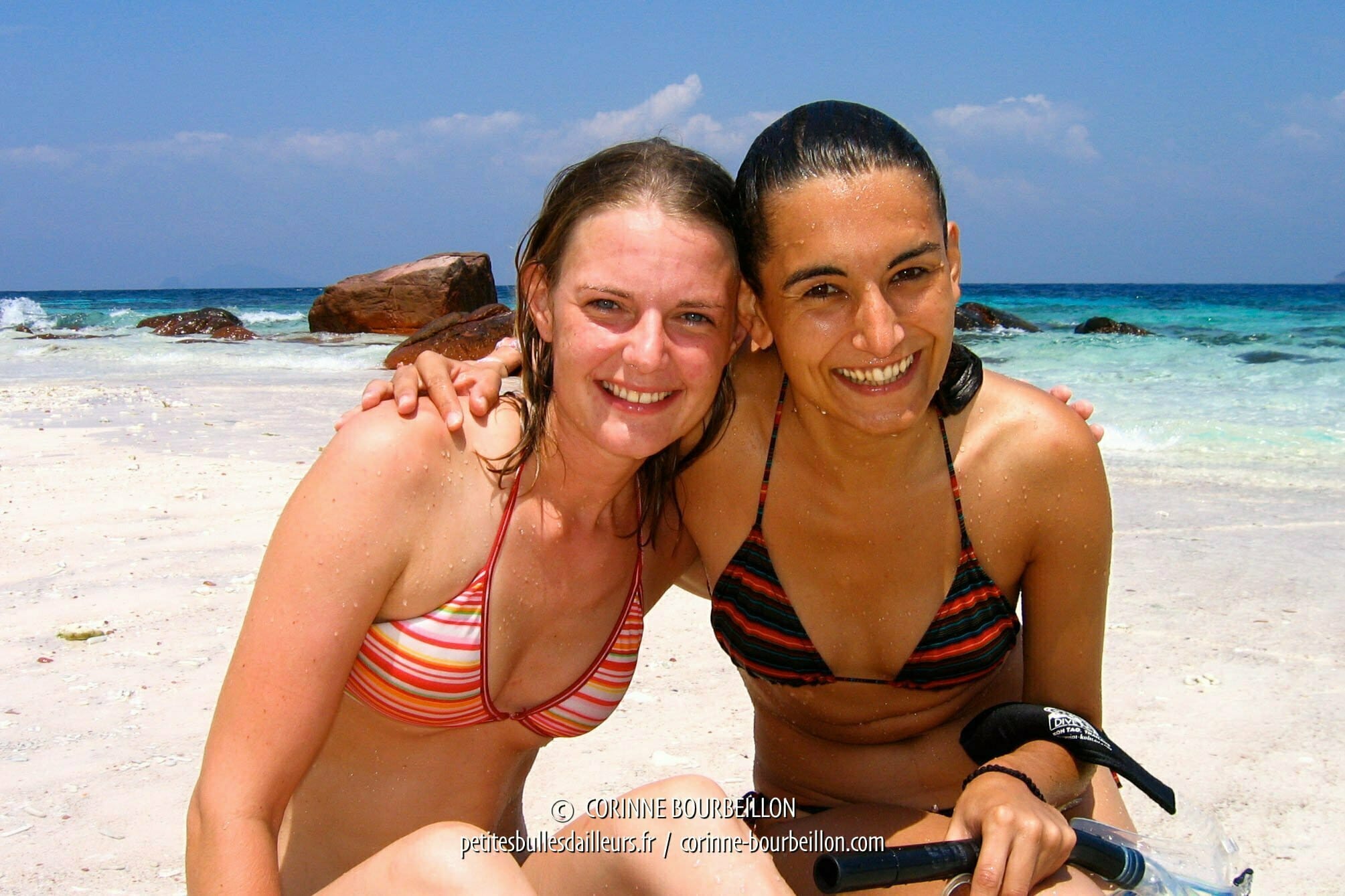 Elle est de l’expédition à Redang. Sur la plage, on prend la pose ensemble.