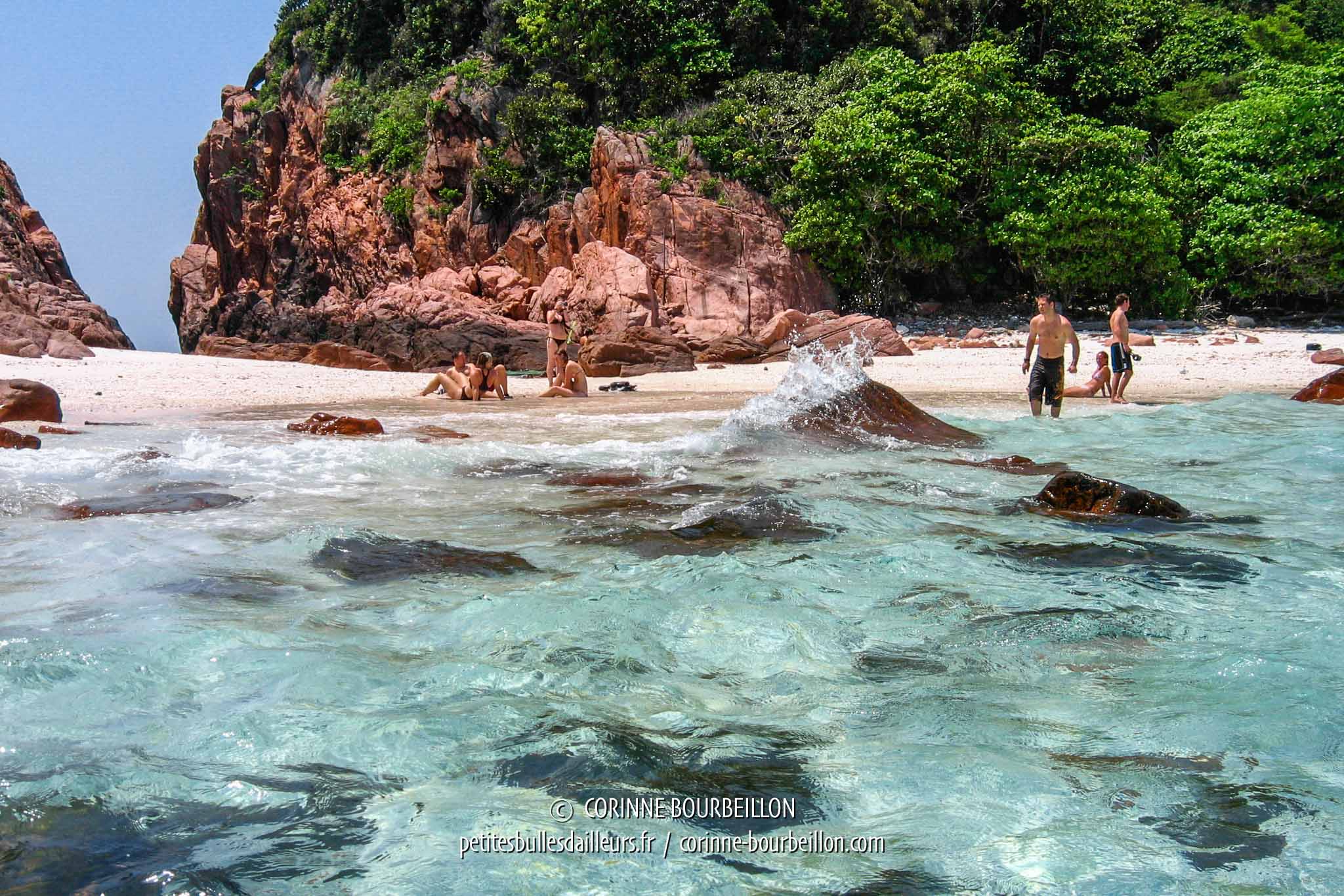 Sable d’un blanc éclatant, bleu translucide de l’eau. À 30 voire 31 degrés, s’il vous plaît… On prend tous des photos.