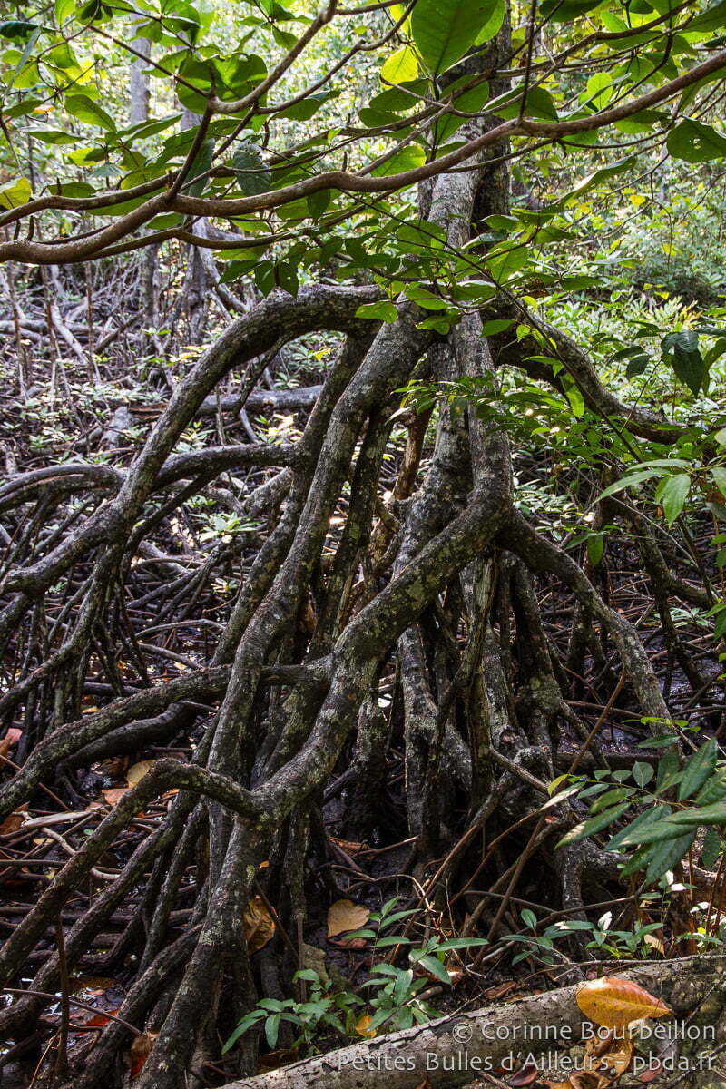 Il ne faut que quelques minutes pour traverser ce bout de mangrove, emprunté chaque jour par les habitants de Sawai Itepo. Certains d’entre eux travaillent au resort.