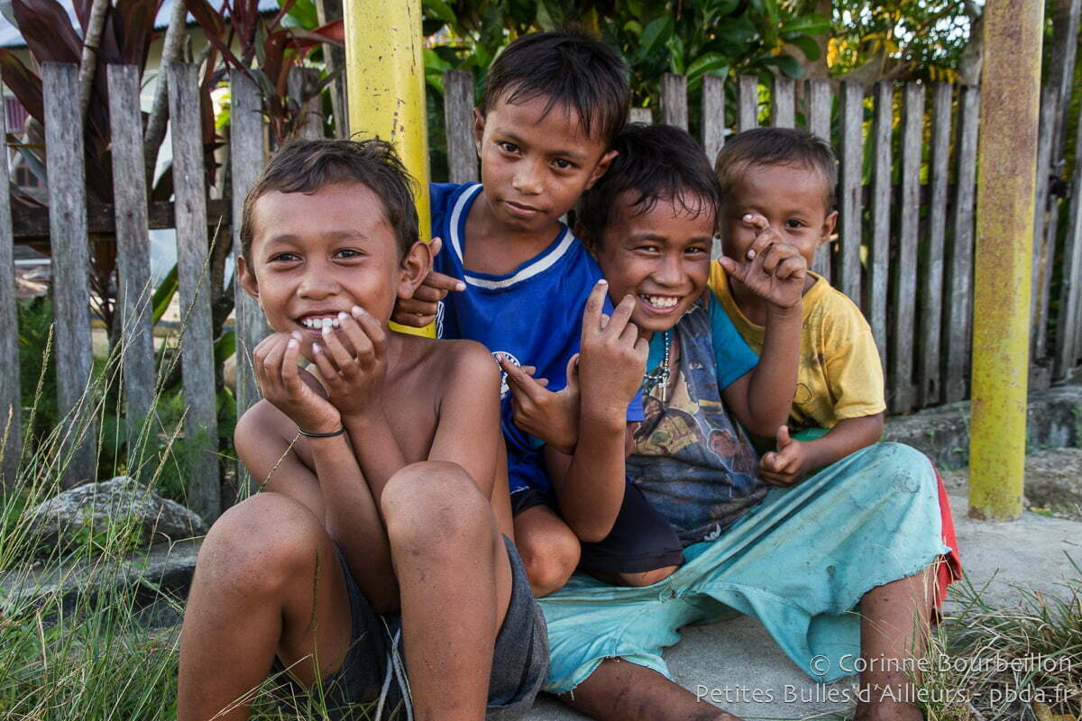 C’est un minuscule village indonésien, entre mer et mangrove, dans la baie de Weda. Ma visite est l’attraction du soir pour les gosses hilares.