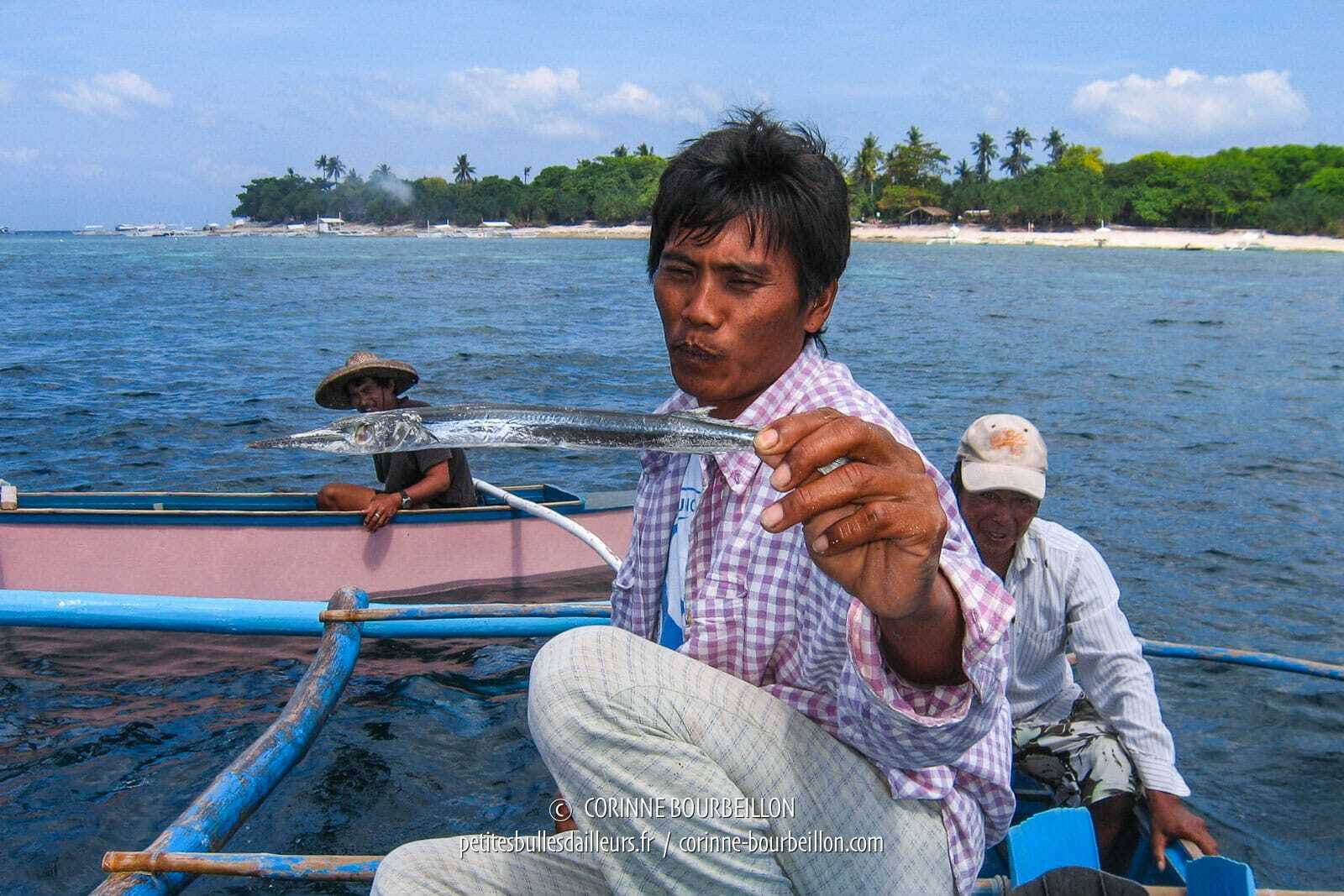 Jeril m’embarque donc le matin depuis Alona, comme convenu, sur sa banca. (Lire le post précédent → Pourquoi je vais fuir Alona Beach).