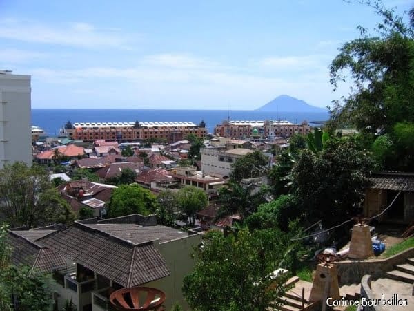 C’est à regret que je quitte aujourd’hui mon chouette bungalow avec vue de chez Divers Lodge. En même temps, je ne suis pas fâchée de rompre avec l’isolement du resort, de retrouver “la vraie vie et les vrais gens”. Retour à Manado, donc, pour une journée étape, le temps de réserver mes billets d’avion pour le pays Toraja et d’organiser mon trajet pour les îles Togian.