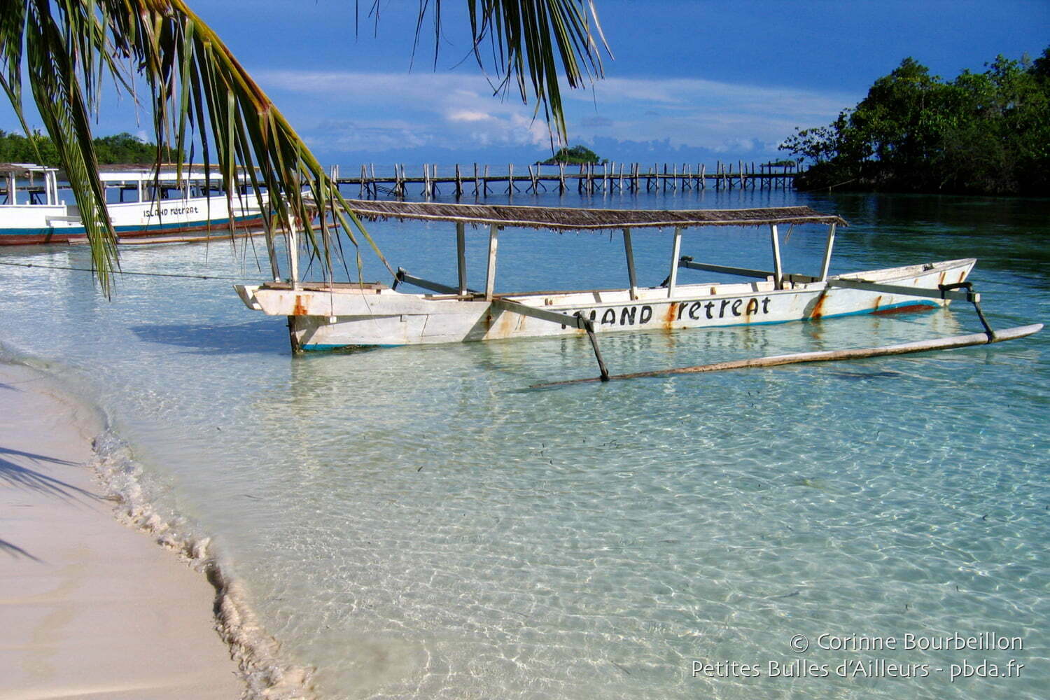 Lors de mon passage là-bas, il y a plus de cinq ans, donc, il n’y avait qu’un seul bateau pourvu d’un moteur (bateau de pêche en bois), qui servait un peu à tout, pour aller faire les courses à Ampana, comme pour les sorties plongée…