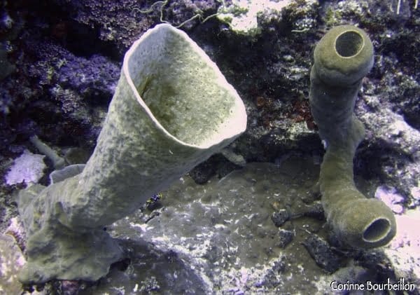 C’est un beau tombant. Le corail a un peu souffert, ça se voit (le réchauffement de l’eau, la dynamite), mais il est en cours de reformation. De belles éponges tubulaires se dressent çà et là. Il y a de nombreuses grottes et niches pas trop profondes, dans les 12-14 mètres, à explorer.