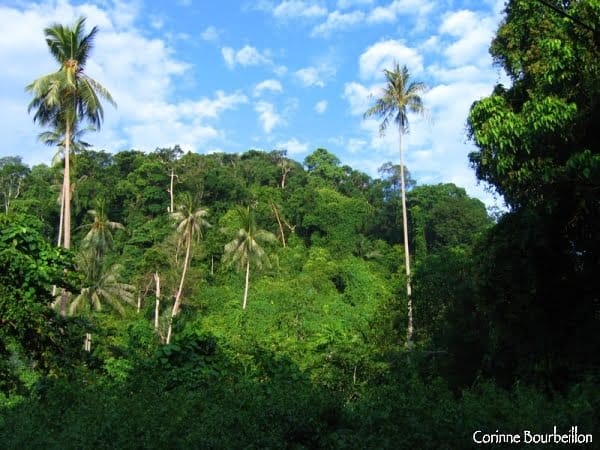 Pour quitter “ma” plage, il faut franchir une mini-colline via un petit escalier. Porter le vélo pour franchir ces quelques marches n’est pas un gros effort, mais il suffit à me mettre en nage. Malaisie, le pays où l’on ne sèche jamais…