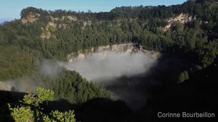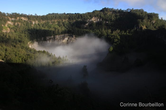 Puis les chants des oiseaux (le Kelimutu est une réserve très estimée des ornithologues), une fois que le soleil est plus haut, on passe de l’ombre à la lumière, on a l’impression d’avoir traversé le Styx et d’être revenu des enfers. 🙄