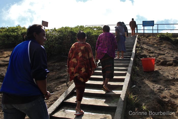 L’endroit est populaire. Les gens du coin aussi viennent ici en excursion. On me salue gentiment : « Hello ! » Je réponds : « Pagi ! » Et même, j’ajoute : « Saya orang perancis », parce que tout le monde veut savoir d’où je viens… Succès garanti.