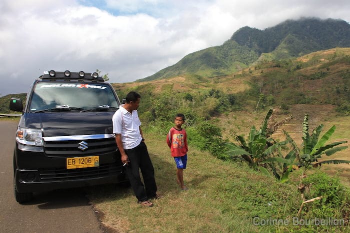 Je n’aurais pas fait ce périple en bemo, ces mini-bus locaux surchargés en marchandises et passagers… Tout le long de cette traversée d’est en ouest, de Maumere à Labuan Bajo, j’ai apprécié le confort de ma voiture privée : amortisseurs en bon état et air conditionné. Ça n’est pas du luxe, sur ce serpent d’asphalte en travaux perpétuels. Et puis, je peux demander à Misir de faire halte quand je veux, pour prendre des photos.