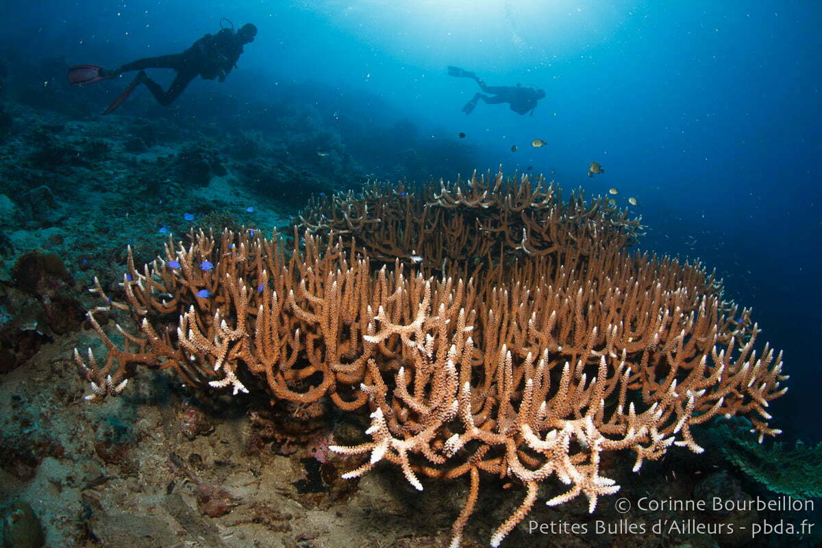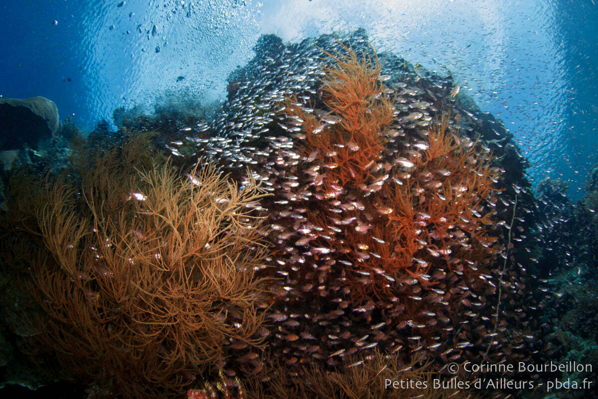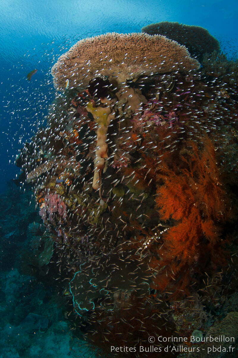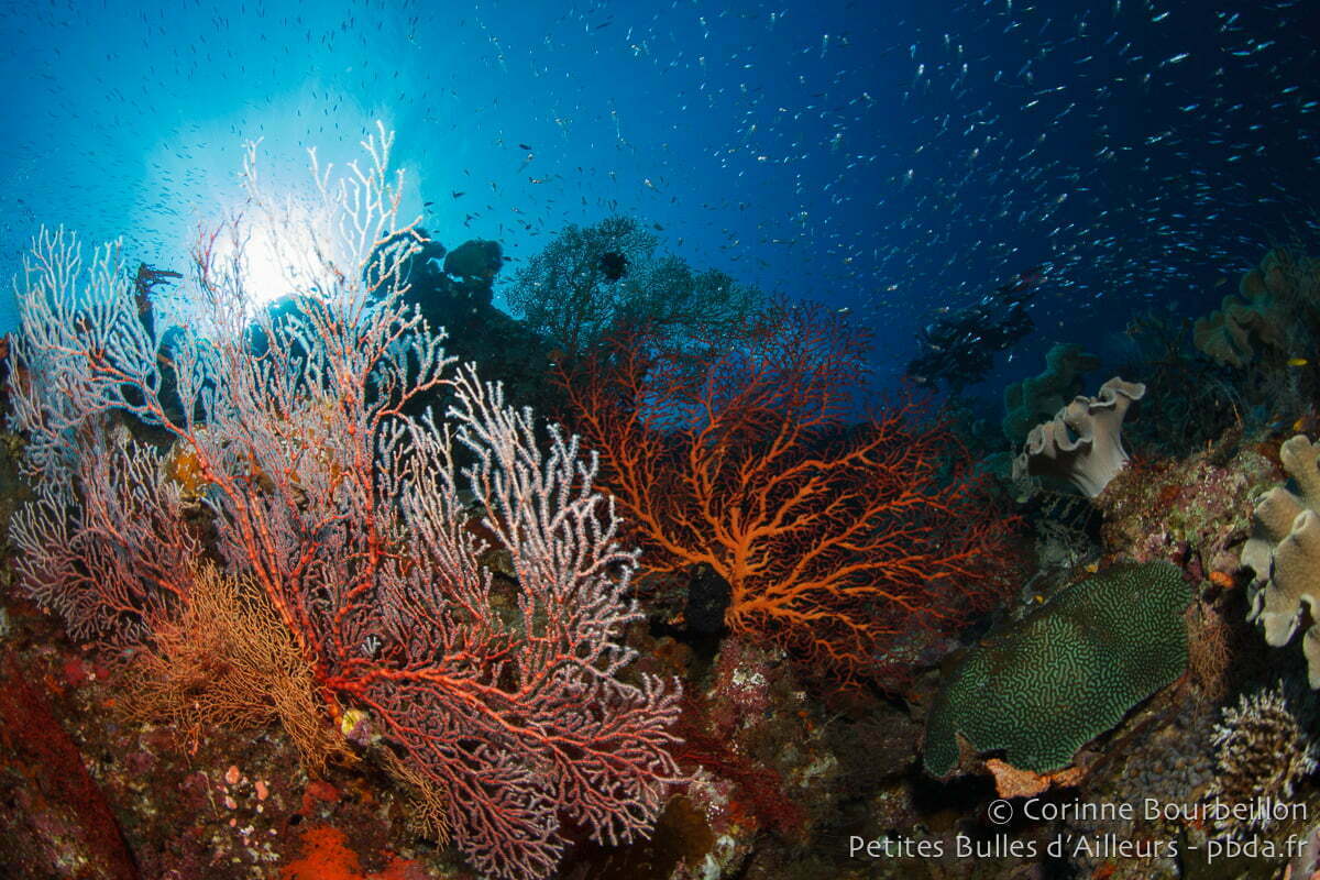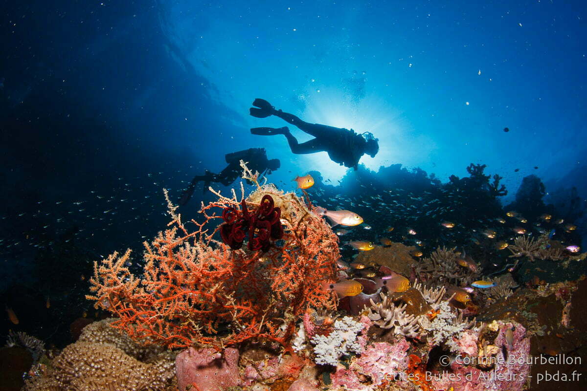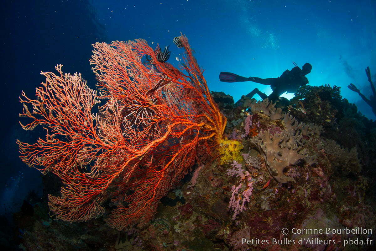 Après, c’est plus difficile. Des lieux comme Bangka Island (Nord-Sulawesi), Bunaken (Nord-Sulawesi), Weda Bay (Halmahera, Nord-Moluques), Tulamben (Bali), Pemuteran et Menjangan Island (Bali), certains sites autour de l’archipel de Derawan (Indonésie, Bornéo), ou Richelieu Rock (Thaïlande, mer d’Andaman), et même les îles Perhentian (Malaisie péninsulaire) me semblent tout à fait dignes de figurer dans ce genre de classement… Mais je n’ai pas encore pris le temps de me pencher sérieusement sur la question.